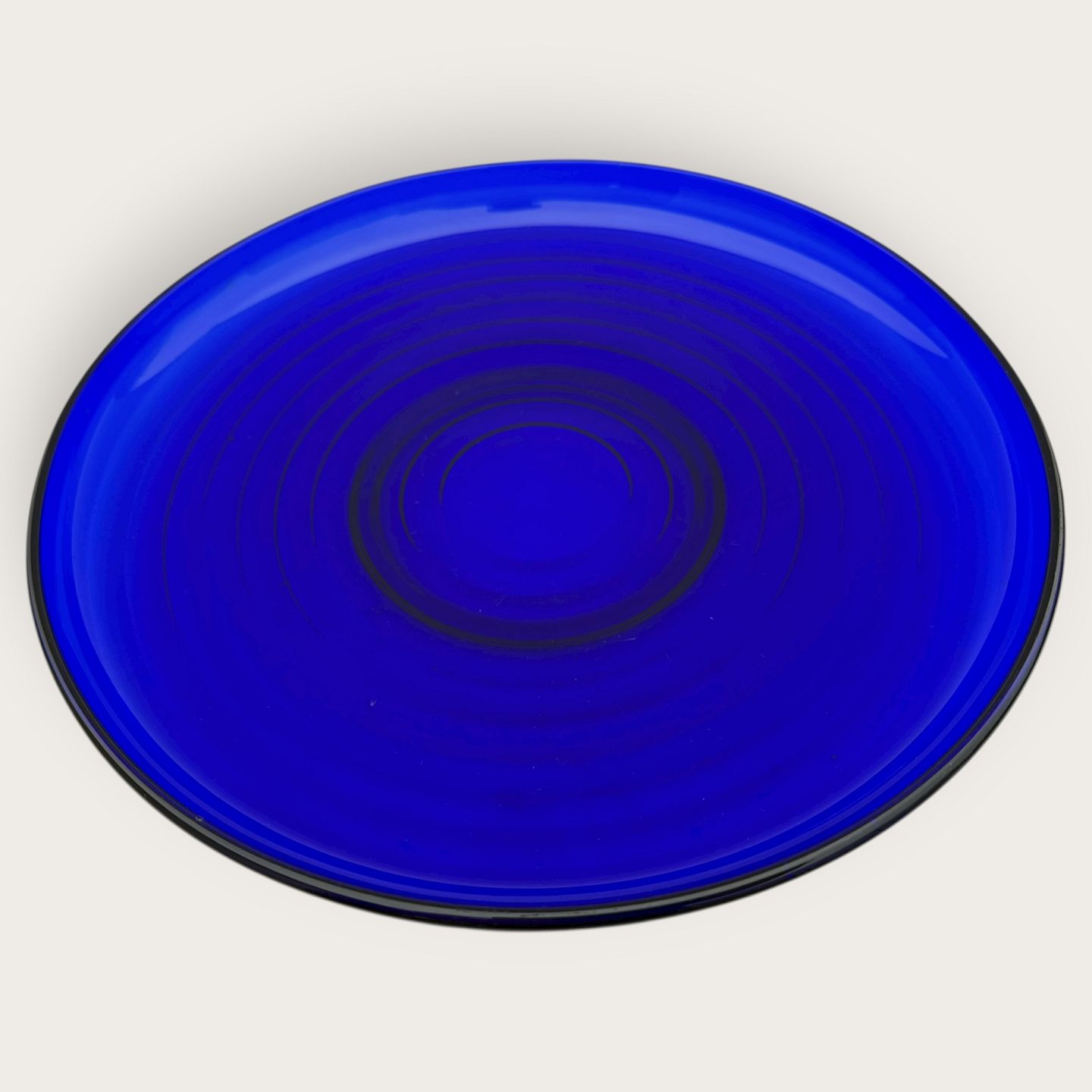 Holmegaard, Broksø, Pressed glass, Blue dish 28cm in diameter, design Jacob E. bang *Good condition*