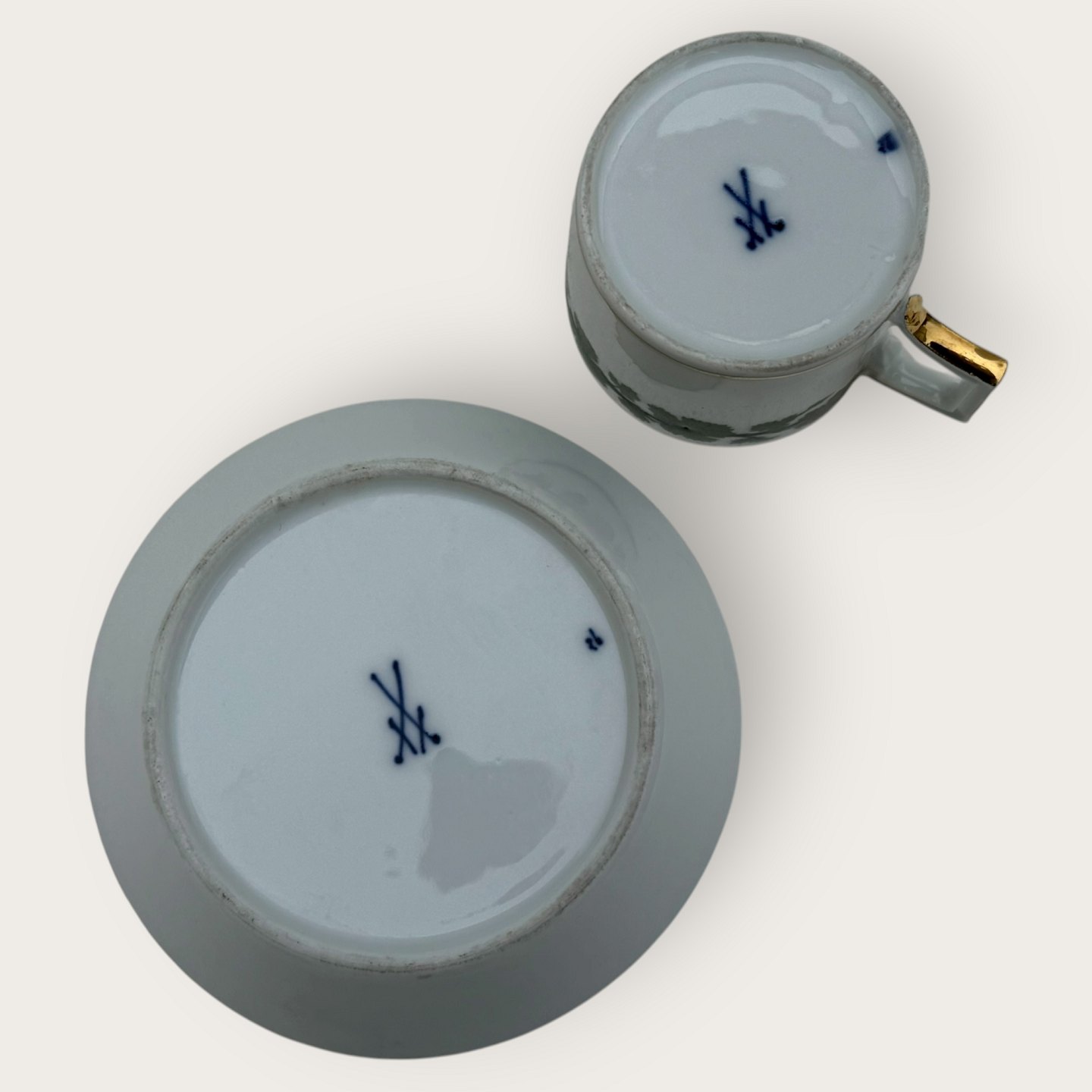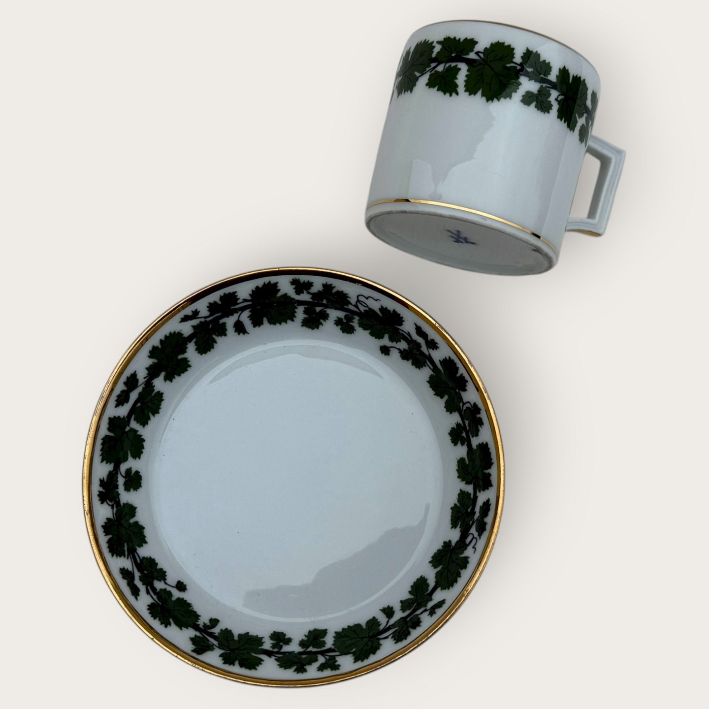 Meissen, Small coffee cup with vine leaves and gold edges, height 5cm, diameter 5cm *fine condition*