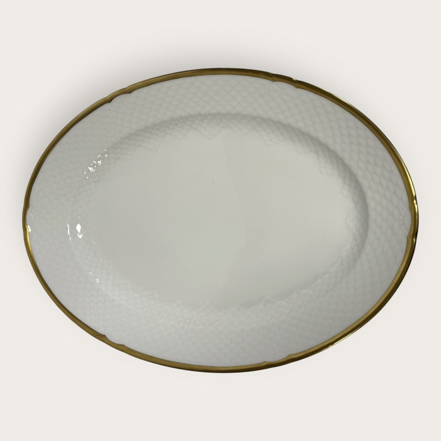 Bing & Grondahl, Aakjær, White porcelain with gold rim, Large serving dish # 15, 41x28.5cm, 1st grade *Good condition*