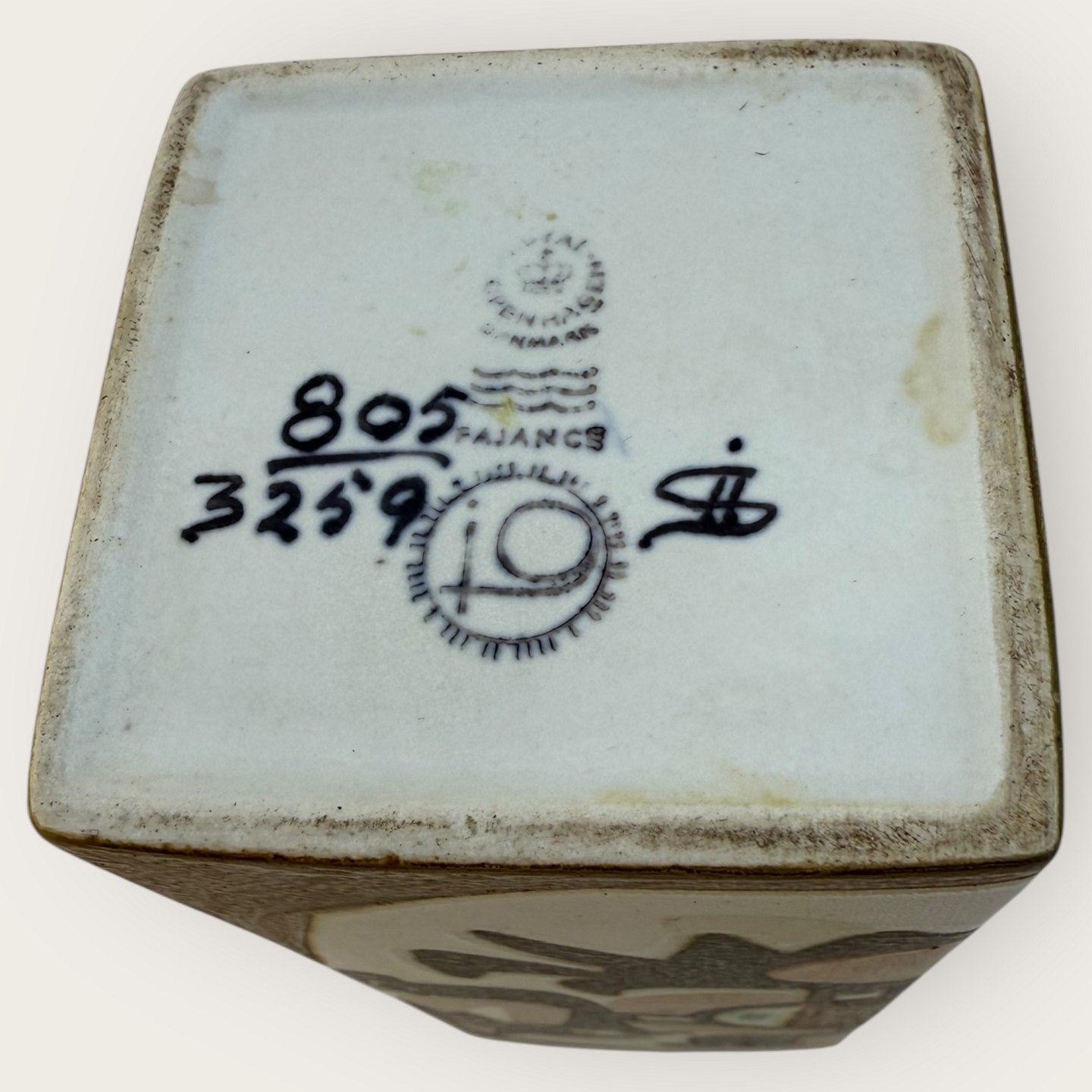 Royal Copenhagen, Baca, Vase med fugle #805/3259, 22cm høj, 7,5cm bred, Design Johanna Gerner *Pæn, lidt mat i glasuren*