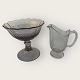 Kandis skål på fod og tilhørende flødekande i let rosa tonet glas, Kandisskål 12cm høj og 11,5cm i diameter, fremstår med meget lille hak under bunden ellers er de begge i fin stand