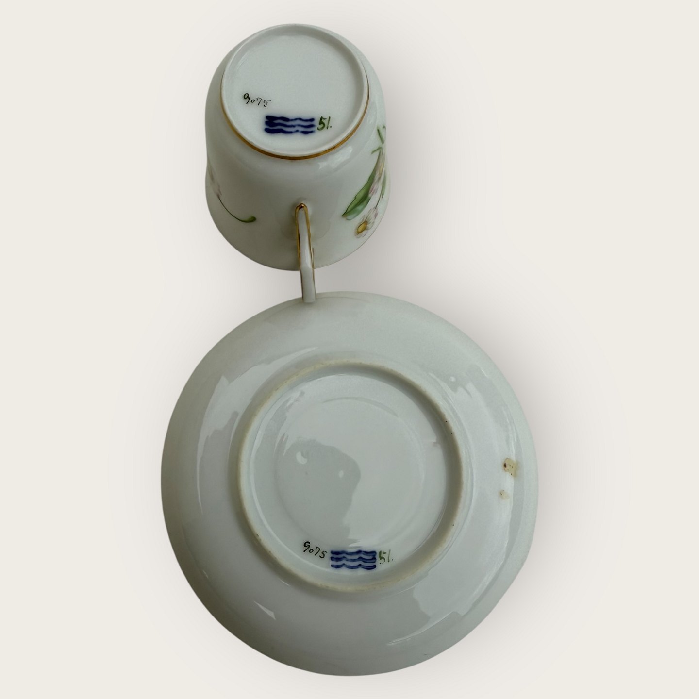 Royal Copenhagen, lille kaffekop i tyndt porcelæn dekoreret med Tusindfryd, #9075, Kop højde 5,5cm, diameter 6,3cm, underkop diameter 8,5, Pæn stand