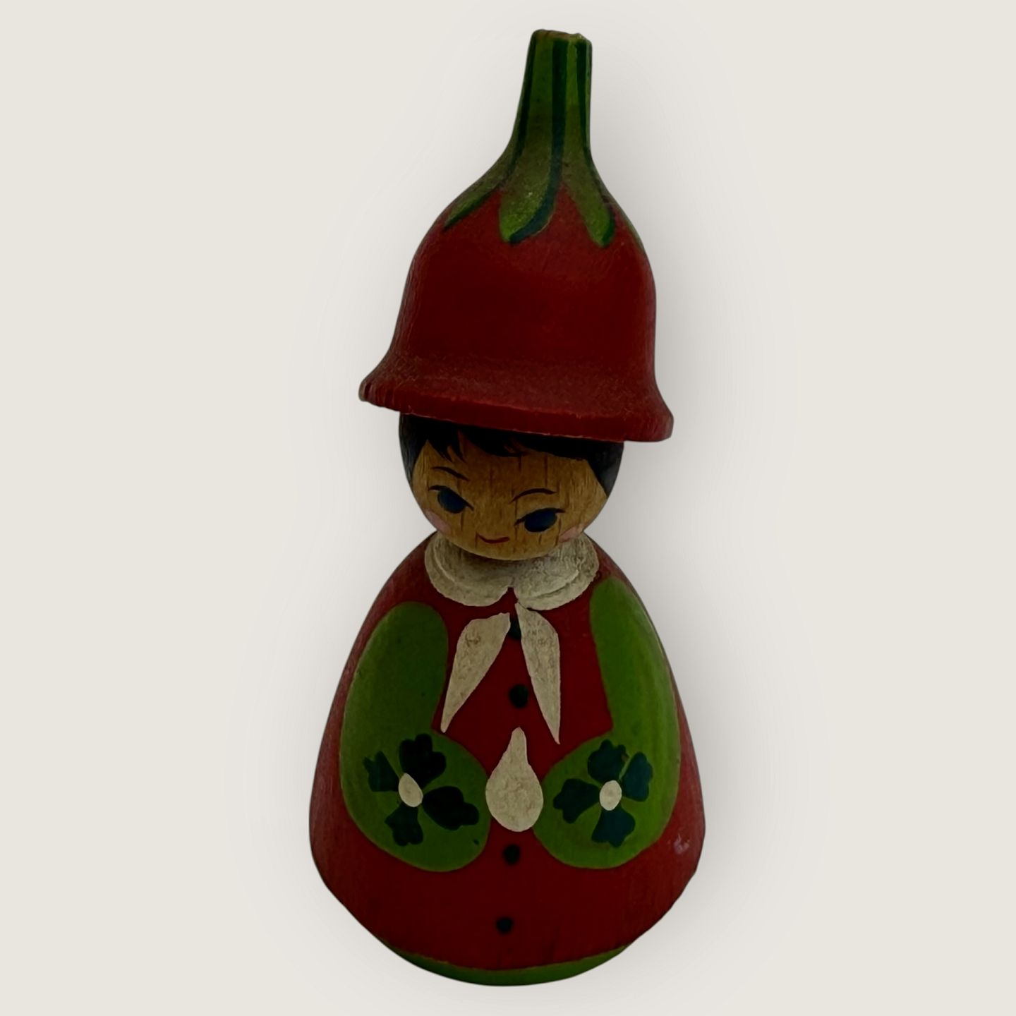 Eigenbrod Bogense, Træ Blomsterpige rød, Påskepynt, 7,5cm høj, 3,5cm i diameter *pæn brugt stand*