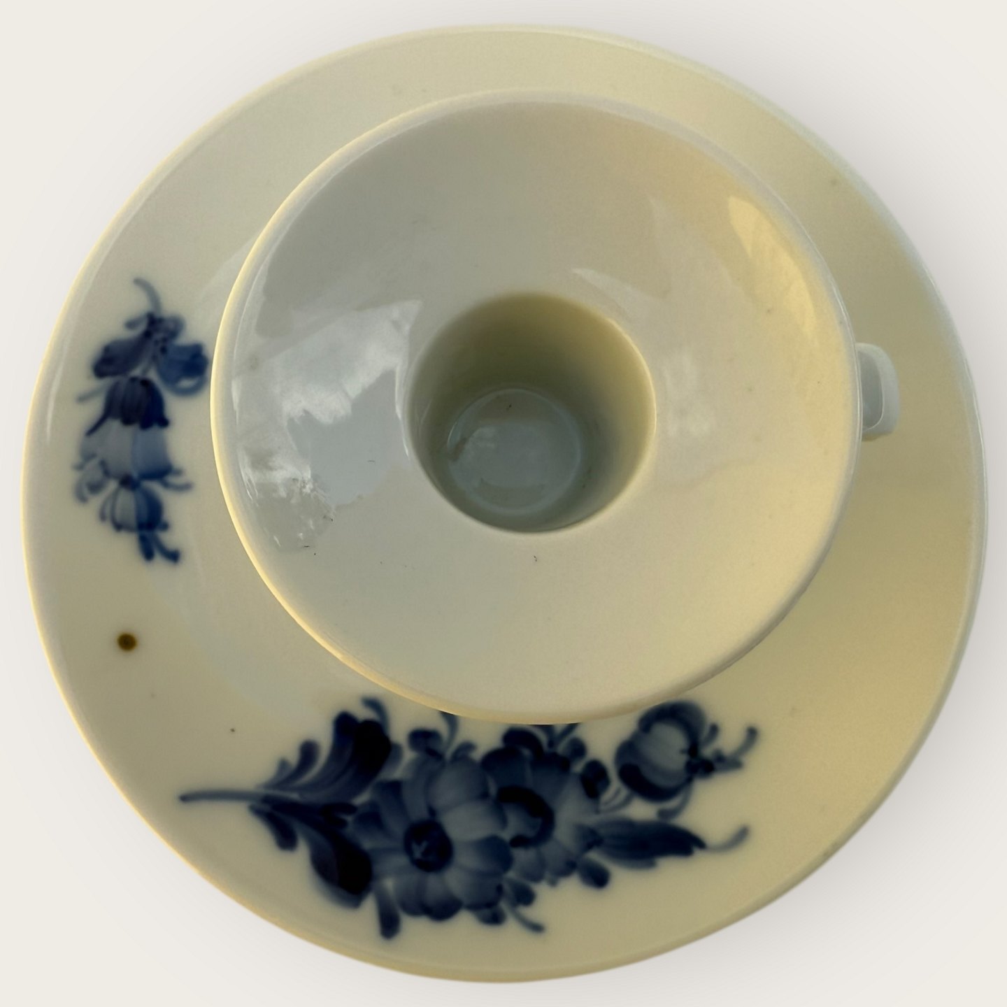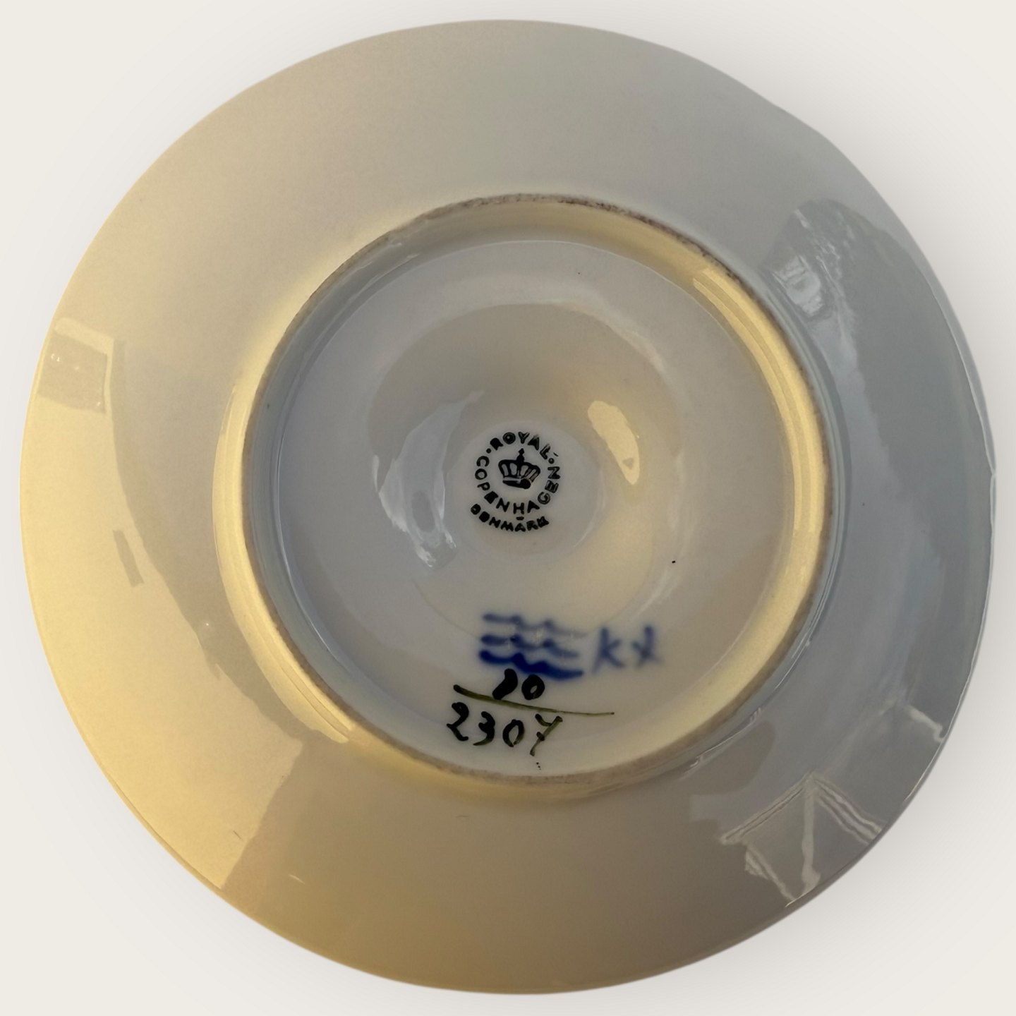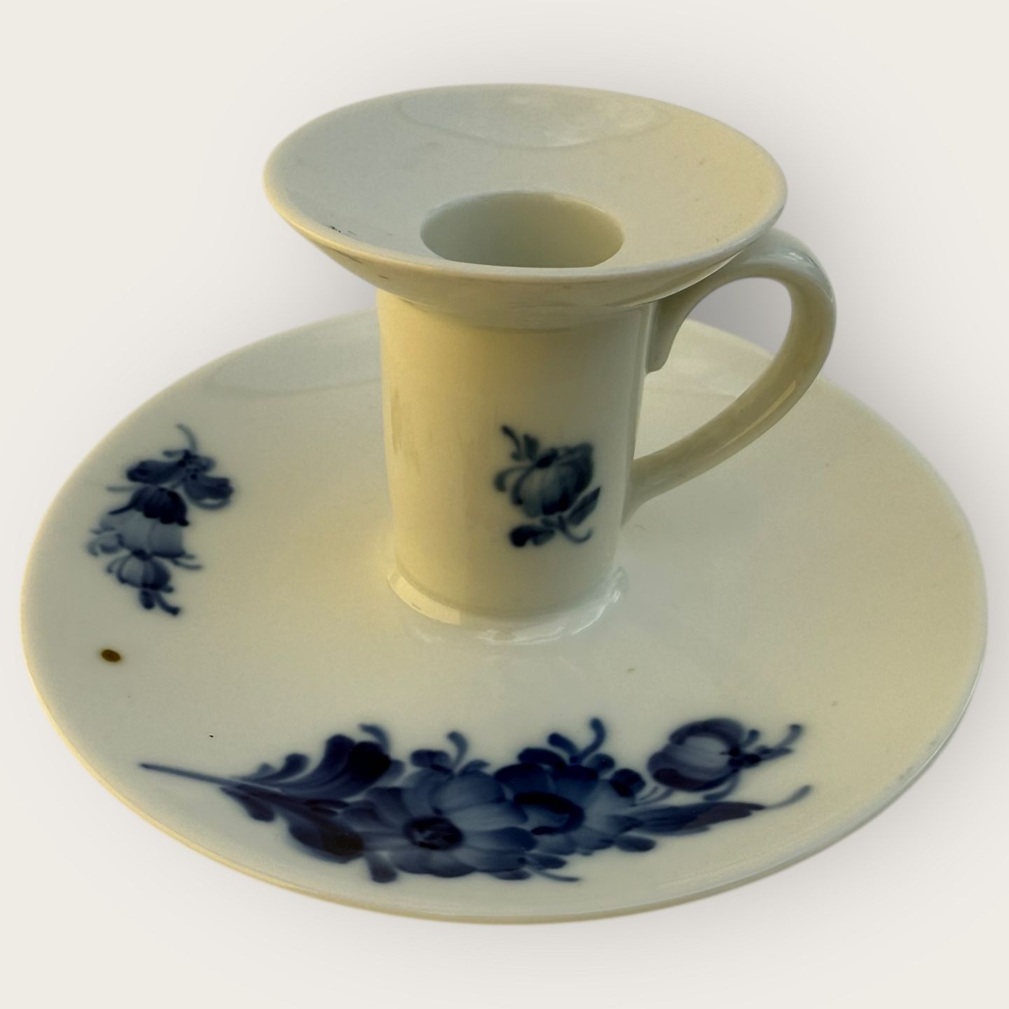 Royal Copenhagen, Blå Blomst, Kammerstage, #10/2307, Medarbejdersortering (4.sort), Fremstår med en brun svovlplet ellers pæn stand, diameter 13cm, højde 6,5cm