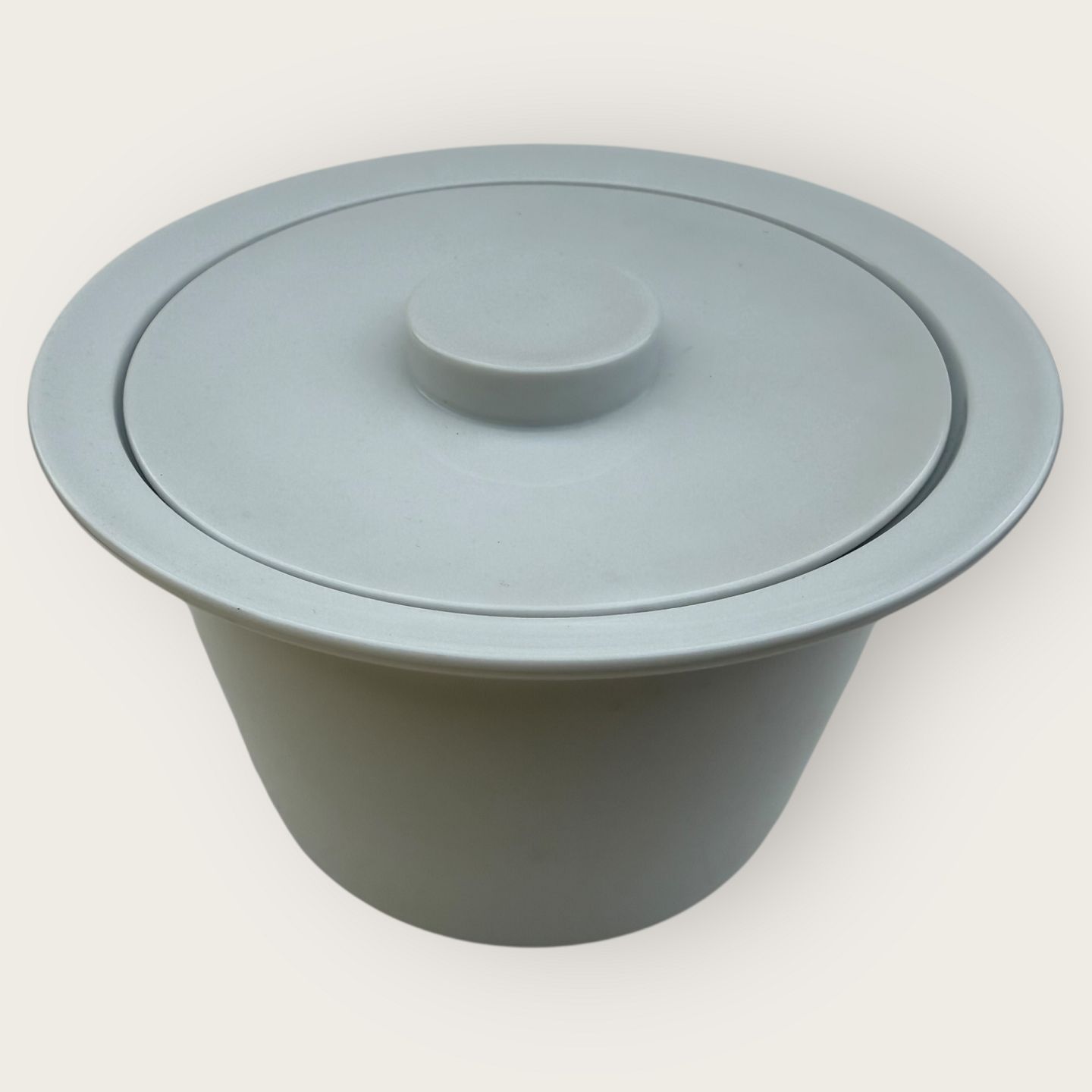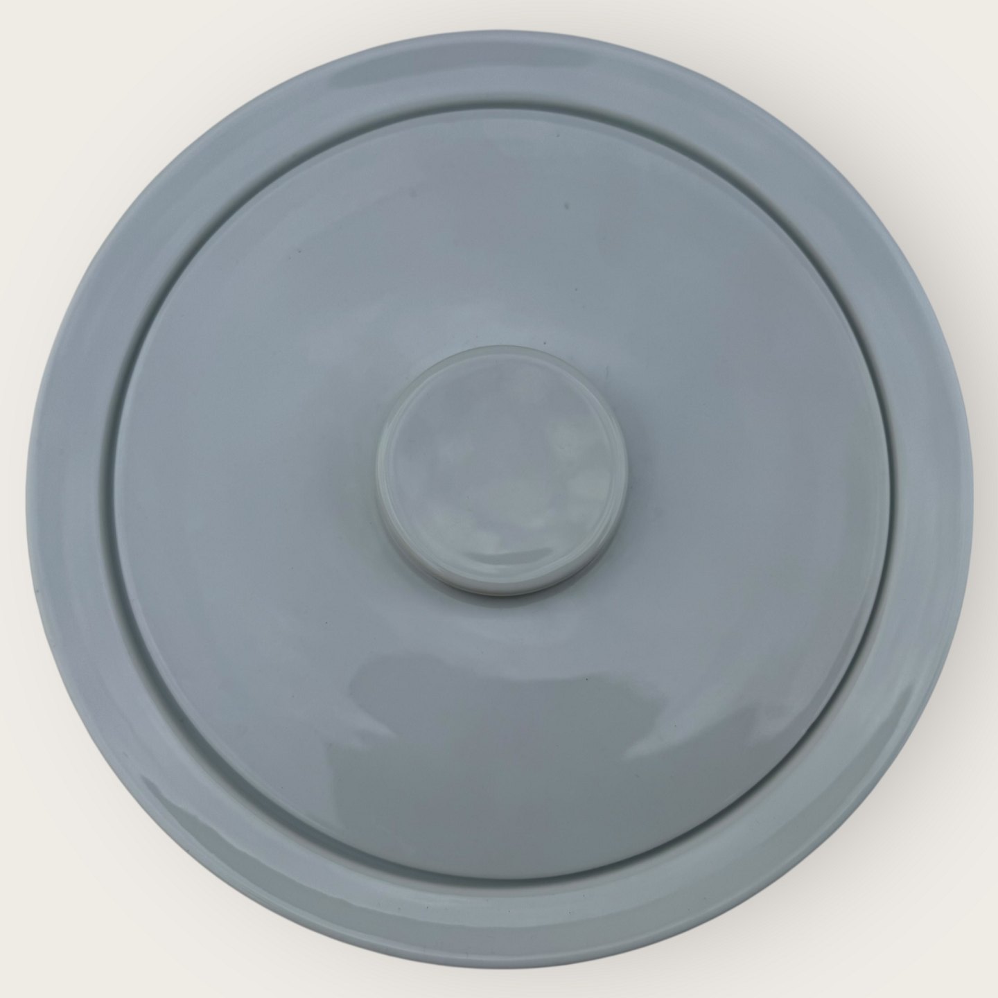 Hvidpot, Royal Copenhagen og COOP, Stor skål med låg, 22cm i diameter, 14,5cm høj, 1.sortering, Design Grethe Meyer *Perfekt stand*