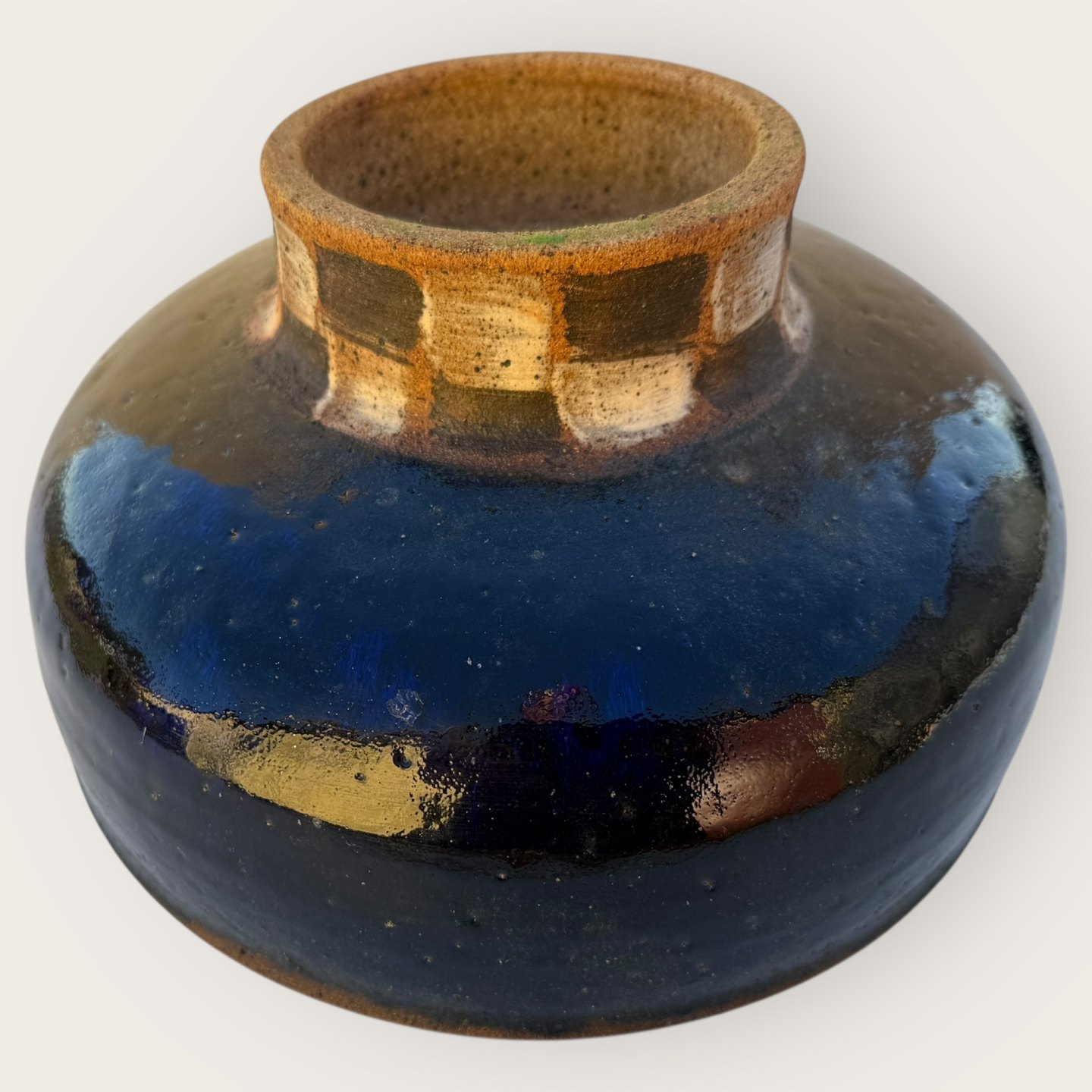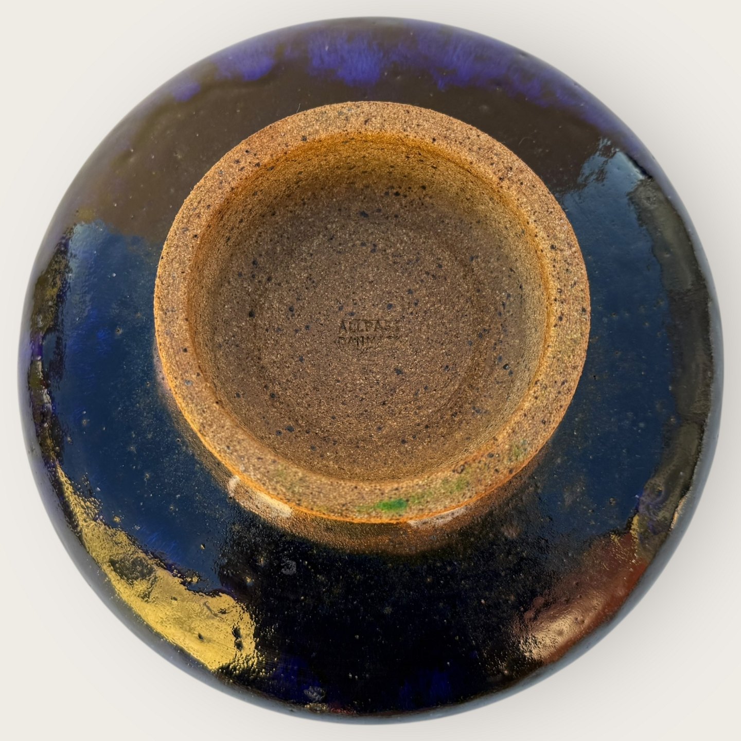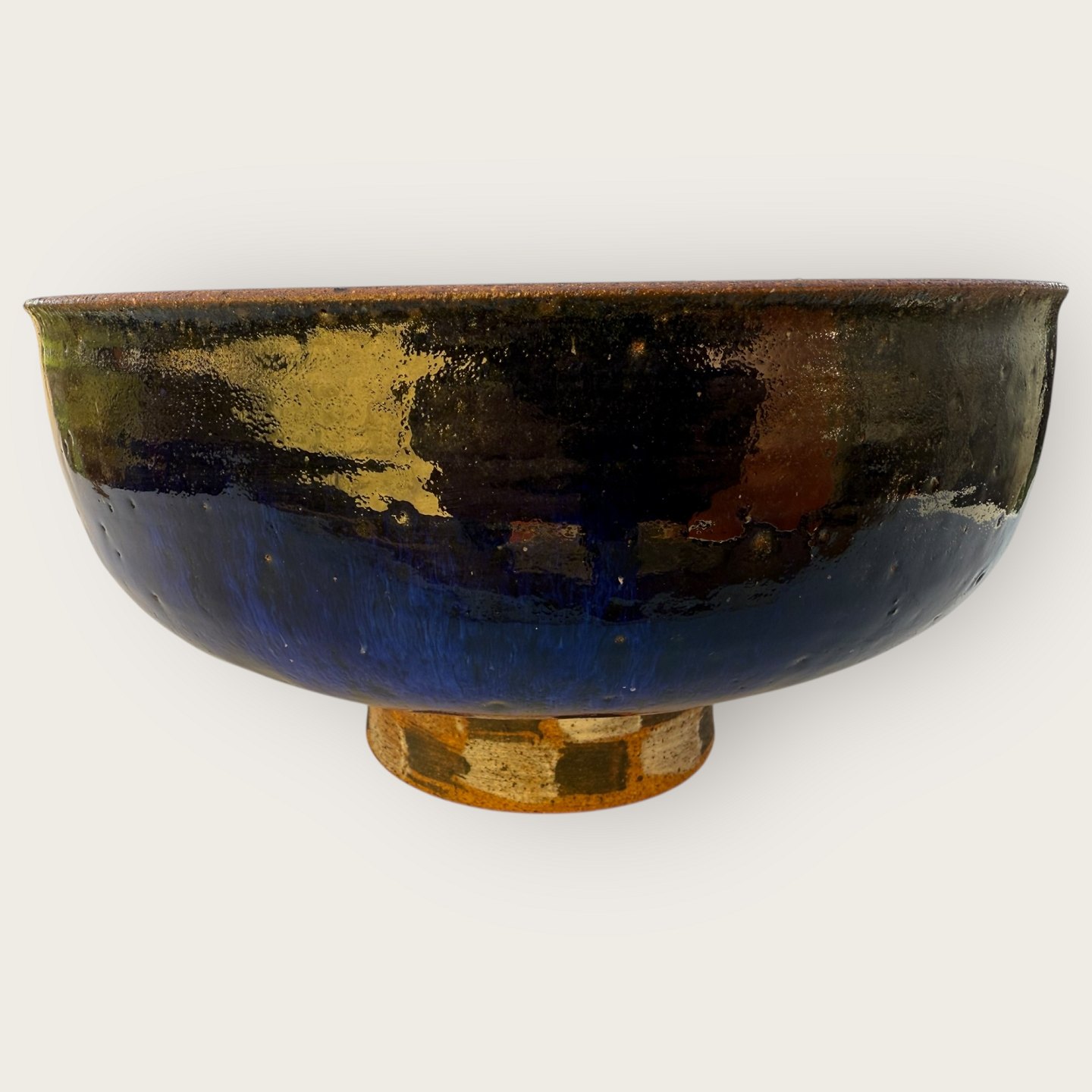 Allpass ceramics, Large bowl on foot, Dark blue colors, 26cm in diameter, 13cm high, Design Helle Allpass *Some unevenness from production (see photo)*