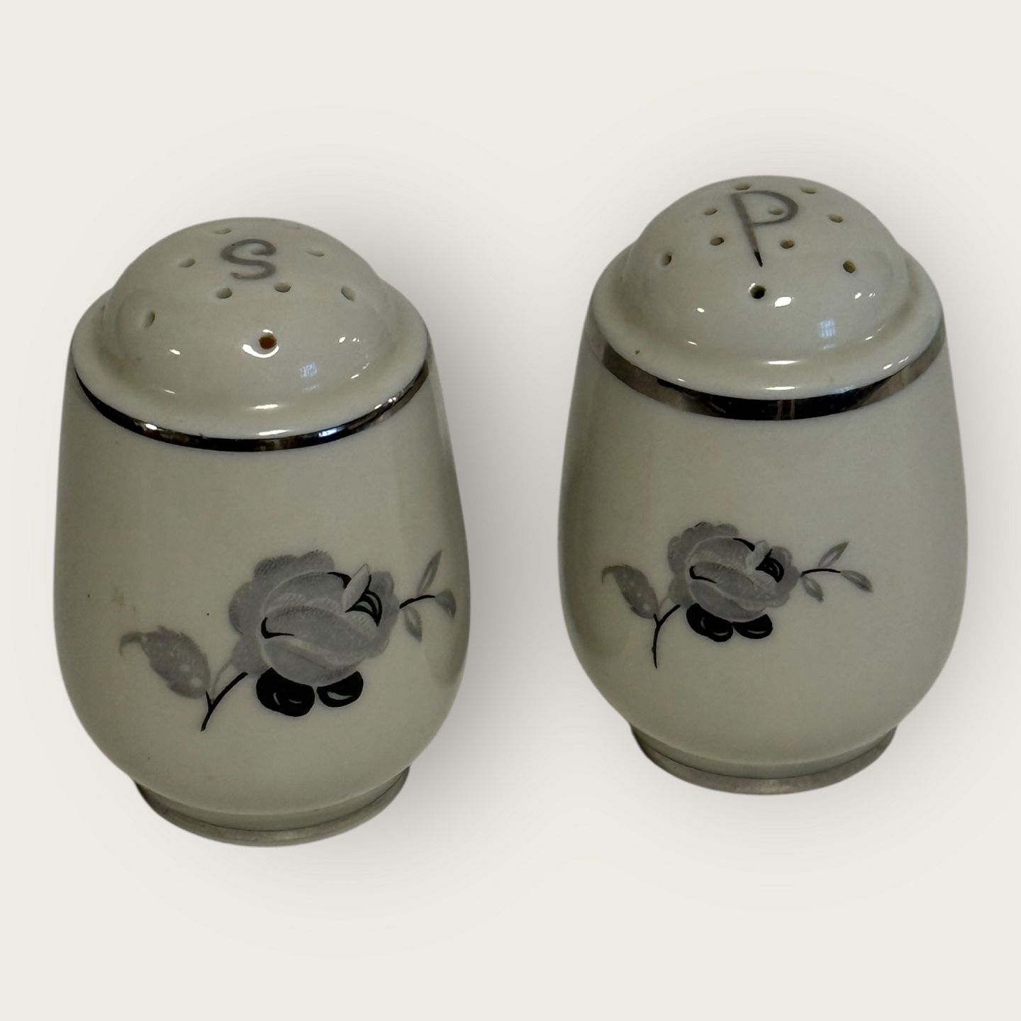Schwarze Rose, mit Plantin-Rand, KPM, Lyngby, Salz- und Pfefferstreuer-Set, Höhe 5,5 cm *Guter Zustand*