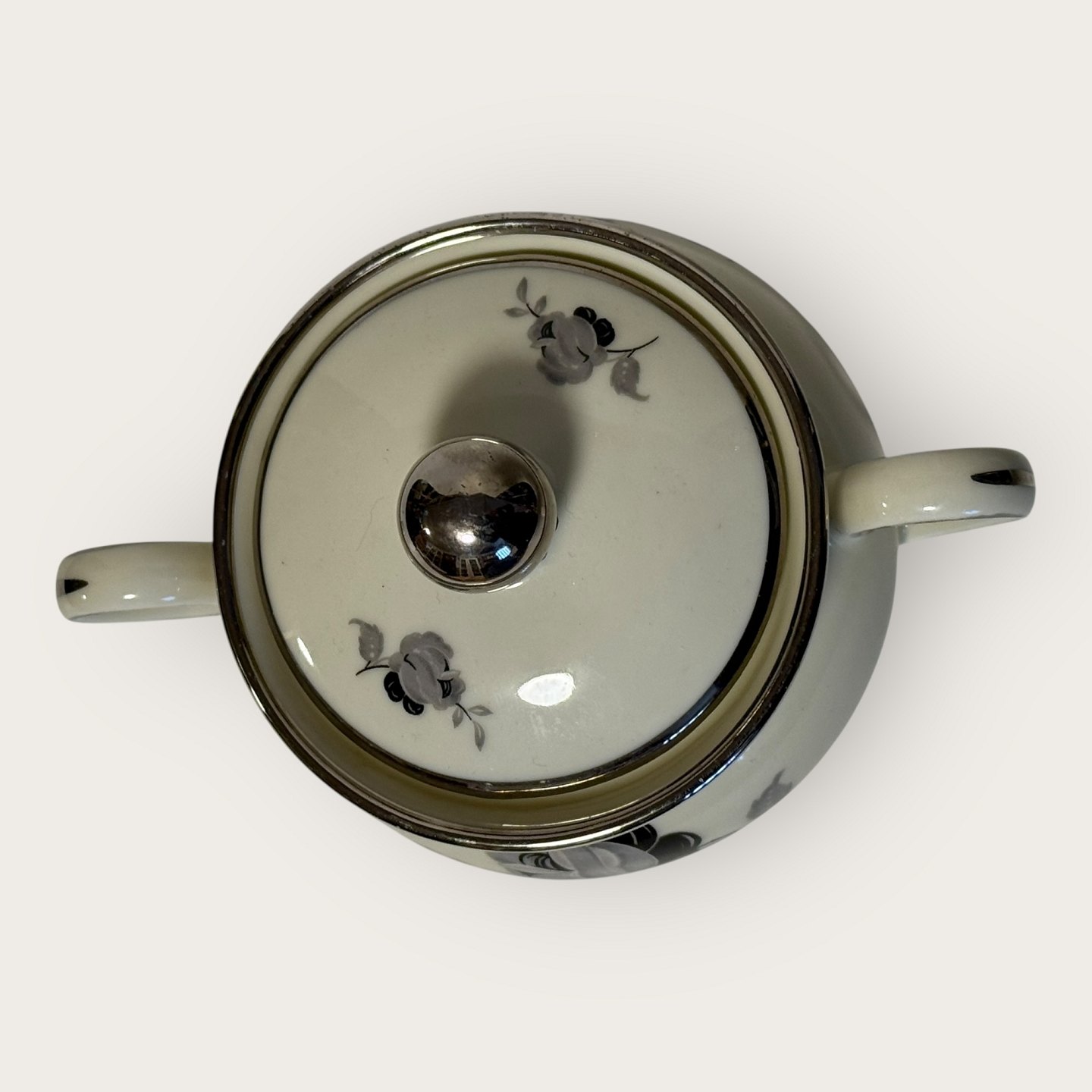 Zuckerdose „Black rose“ mit Plantin-Rand, KPM, Lyngby, Maße ca. 16 x 11 x 11 cm *Guter Zustand*