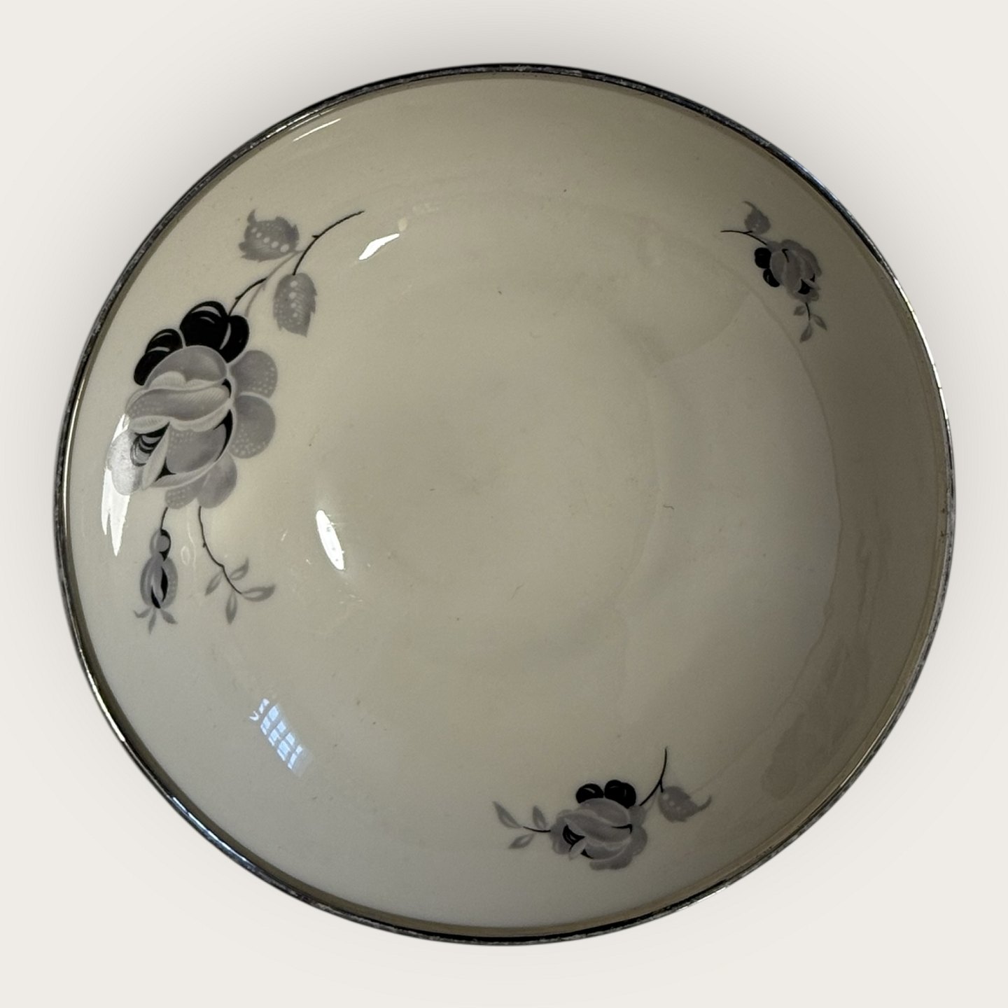 Schwarze Rose, mit Platinrand, KPM, Lyngby, kleine Schale, 15 cm Durchmesser *Leichte Gebrauchsspuren am Silberrand, ansonsten in gutem Zustand*