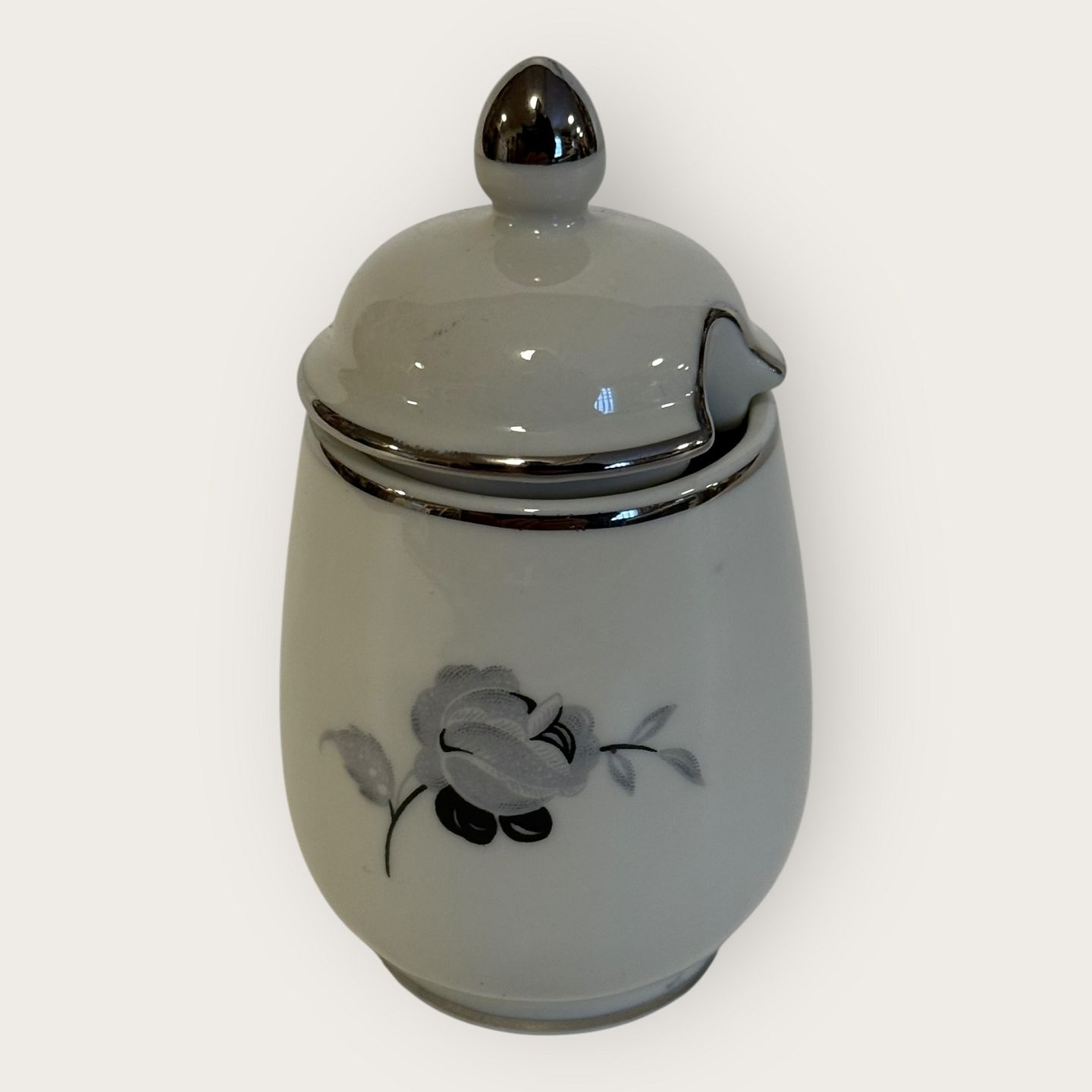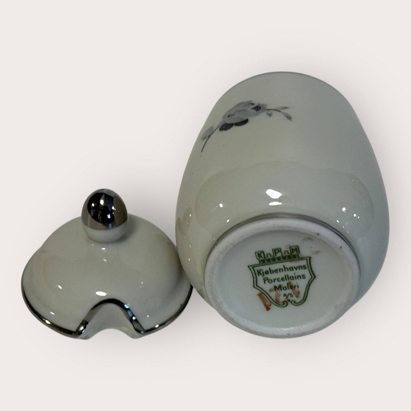 Black rose, with Plantin border, KPM, Lyngby, Mustard jar, 9cm high *Good condition*