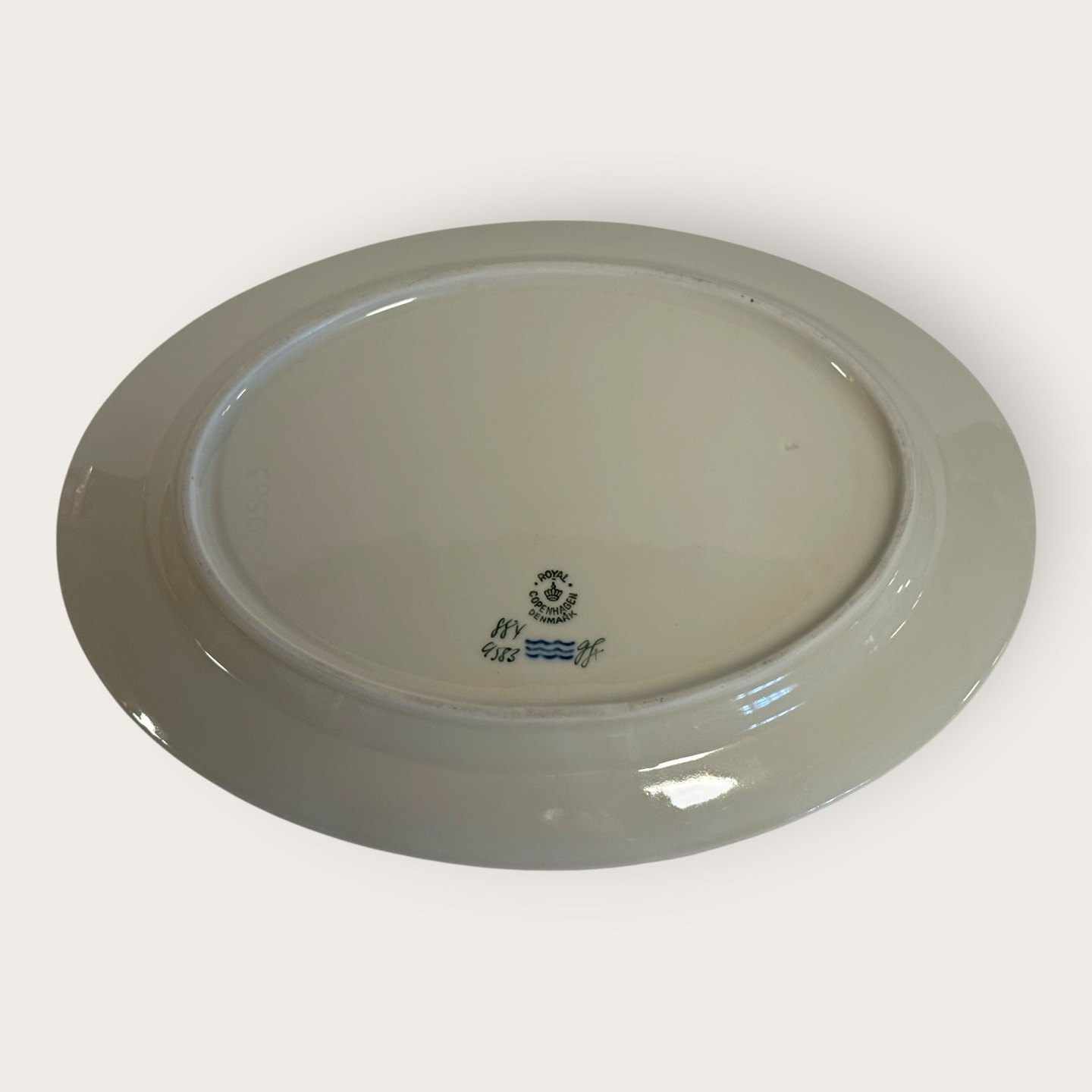 Royal Copenhagen, Hjertegræs, Ovalt fad #884/9583, 27,5x20,5cm Design Thorkild Olsen *Pæn brugt stand med lidt slid på guldkanten*
