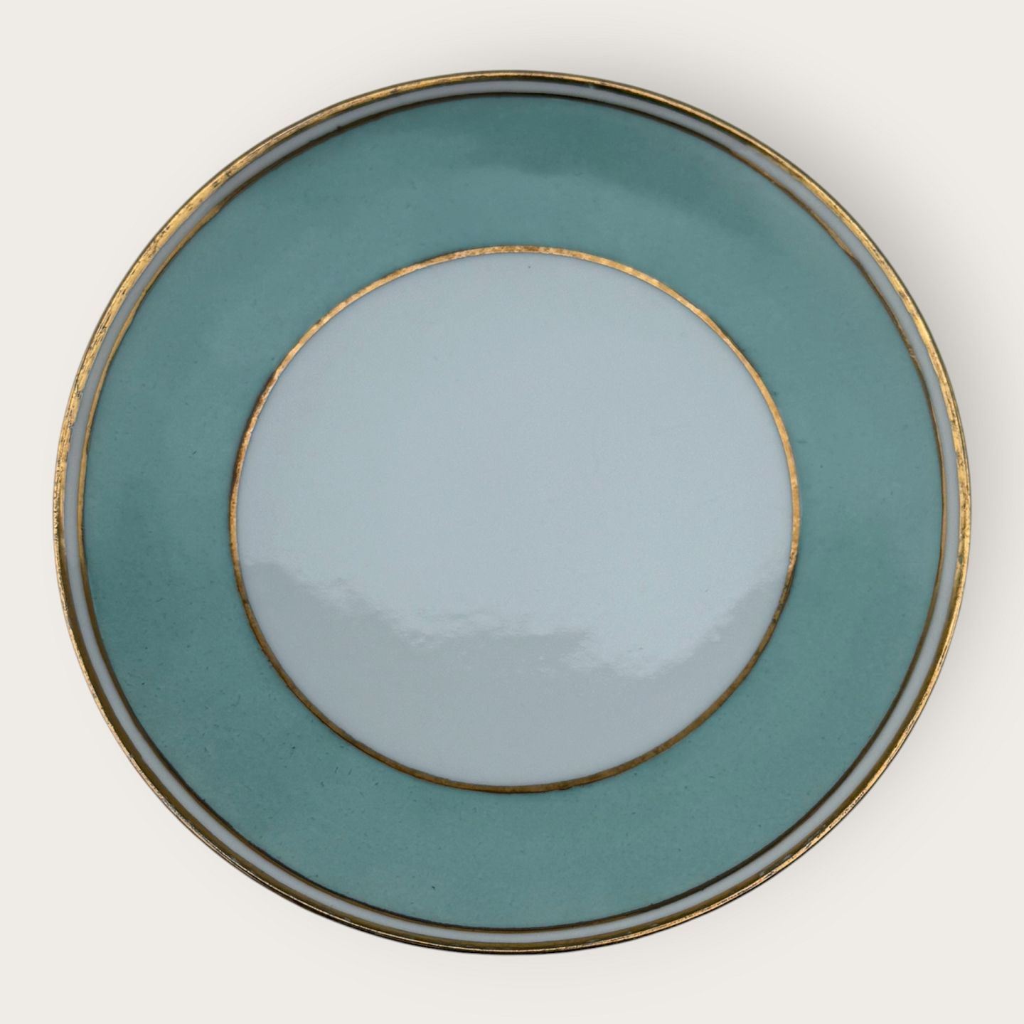 Bing & Grøndahl, Form 643 med bred turkis dekoration og guldkant, kagetallerken, diameter 15cm, 1. sortering, *pæn stand*