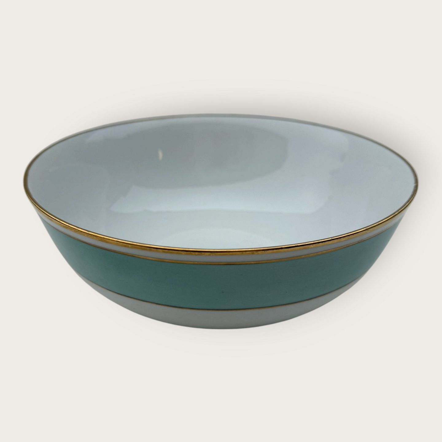 Bing & Grøndahl, Form 643 med bred turkis dekoration og guldkant, Serveringsskål, #43, 8cm høj, bredde 21cm, 2. sortering, *Pæn stand*