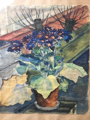 Potteplante (Cineraria eller Fnokurt) i vindueskarm 1926.