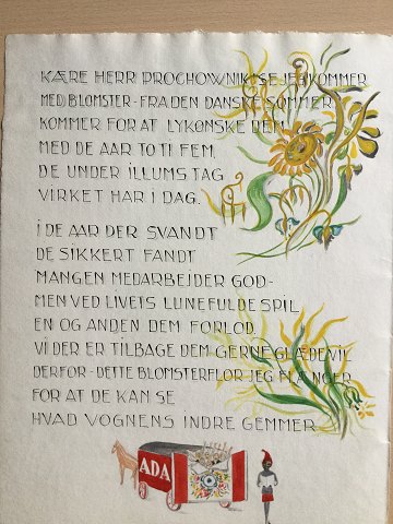 Lykønskningsdigt på 2 sider til Hr. afdelingschef Arthur Prochownik ifm 25 års jubilæum 1. juni 1929 hos A.C. Illum (nuværende Illums).