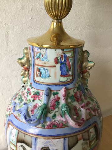 Omlavet til bordlampe med messingmontering. Halsen antagelig slebet ned før montering.