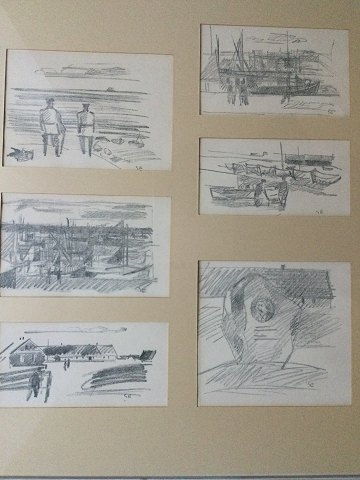 6 tryk på papir indrammet med passepartout i samme ramme.