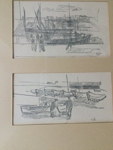 6 tryk på papir indrammet med passepartout i samme ramme.