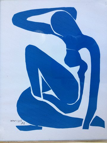 Henri Matisse (1869-1954): Blå kvinde 1952 Tryk efter Henri Matisse. Indrammet 53x43