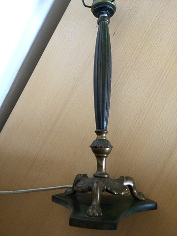 Bronze Bordlampe. Delvis grønpatineret. trepasfod med dyrepoter og kanneleret stamme. Højde inkl. montering 38 cm.