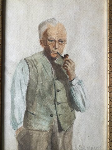 Carl Møldorf (født 1885): Gammel mand med pibe 1946. Akvarel på papir. Sign.: Carl Møldorf. Indrammet 33x23