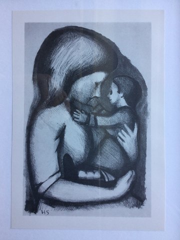 Herman Stilling (1925-96): Mor og barn Offsettryk på papir efter maleri. Sign.: HS (i trykket) 20x14 (33x24)