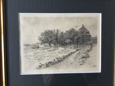 Sign.: P. Tom Petersen (bly) samt monogram 1910 i trykket.