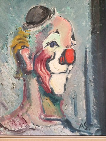 Aage Strand (1910-75): Portræt af klovn. Olie på lærred. Sign.: ÅS 50x40 (67x57) Åge Strand 29622