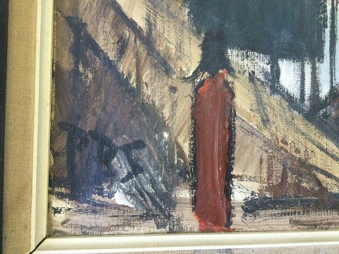 Peder Brøndum Sørensen (1931-2001): "Huse ved havet" 1971. Olie på lærred. Sign.: PBS Bagpå - P. Brøndum Sørensen 1971 samt Huse ved Havet 31x41 (49x59) 15023