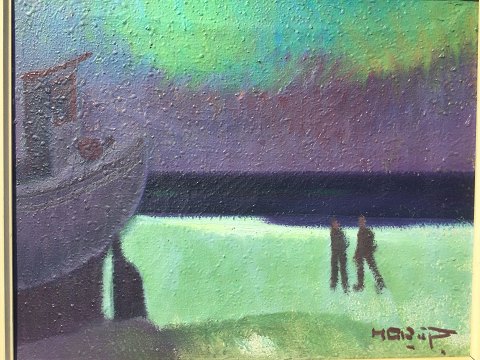 Knud Horup (1926-73): Strandparti med båd og person. Olie på lærred. Sign.: Horup 40x50 (56x66) 16923