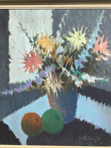 Knud Horup (1926-73): Blomster i vase ved vindue. Olie på lærred. Sign.: Horup 70x60 (86x76) 16923