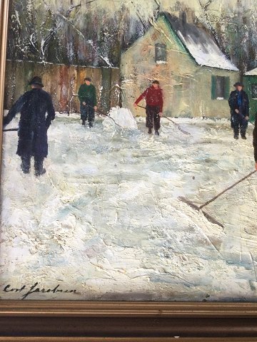 Cort Jacobsen (1911-67): Der ryddes sne. Olie på lærred. Sign.: Cort Jacobsen. 41x33 (49x41)