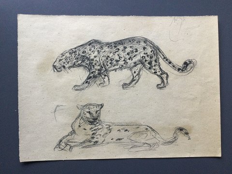 Torkil Norél (1922-2009): Snigende leopard og hvilende leopard. Kul/bly pĺ papir. Sign.: usigneret Uden ramme 27x37 5924