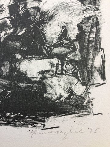 Anita Houvenaeghel (født 1945): Komposition 1995. Litografi på papir. Sign.: Houvenaehgel - 95. 30x22 (33x24) Har ét eksemplar uden ramme på lager. 110624