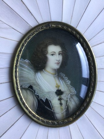 Ubekendt miniature maler (19 årh): Portræt af Marie Louise de Tassis (1611-38) Gouache på ben. Efter maleri af Anthony van Dyck (1599-1641) Indrammet i smuk benramme med skildpadde bort, Mål: 5x4 (10x8)