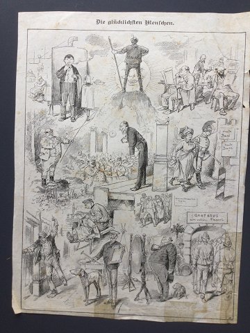 Ubekendt kunstner (19 ċrh): planche "Die Glücklichsten Menschen" Litografi pċ papir. Sign.: CA Flere pletter - tyndt papir. Uden ramme 29x21½ 10623