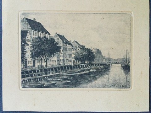 Martin Frederik Larsen (1881-1952): Parti fra København Snorrebroen, Christianshavn. Radering på papir. Sign.: MF Larsen (i trykket) Uden ramme plademål 12½ x 17½ - arkets mål 19x23 41821