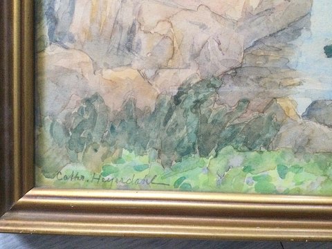 Catharine Heyerdahl (1861-1952): Kystparti med klipper Akvarel på papir Sign.: Cathr. Heyerdahl 26x35 (29x38) 30624