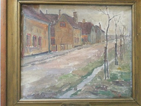 Magnus Bengtsson (1888-1956): Byens Udkant. Olie på lærred. Sign.: M. Bengtson 33x39 (43x49) 9821