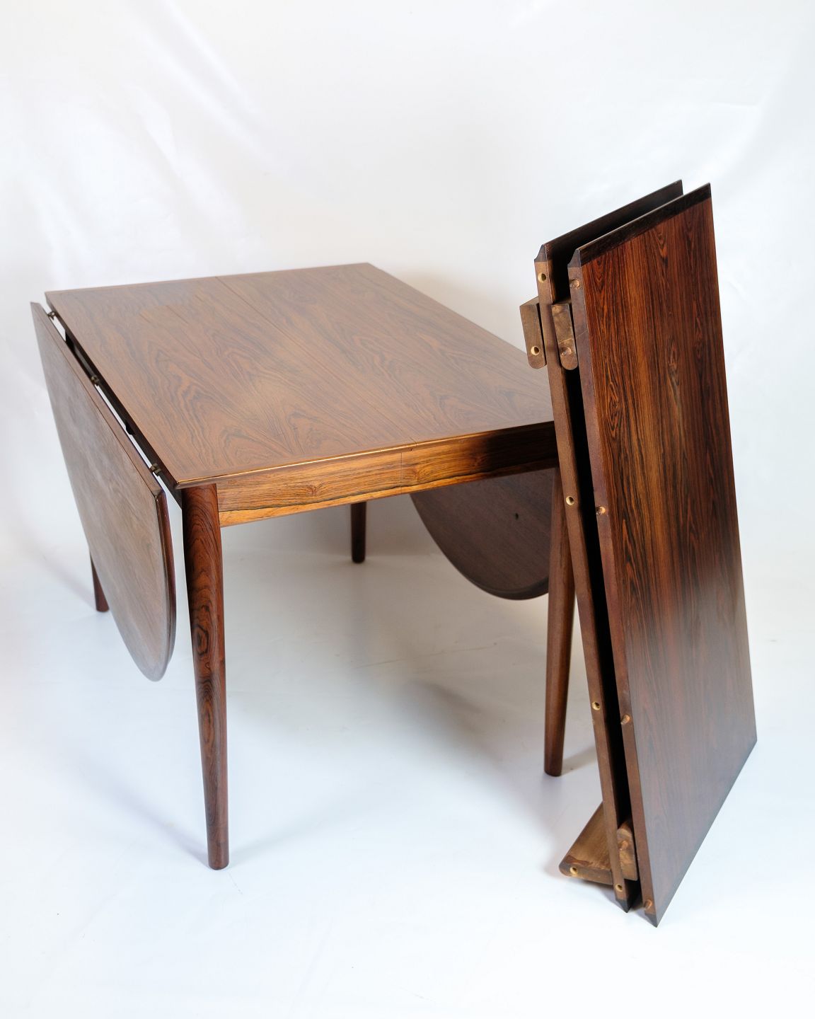 Dining table with flaps and pull-out in rosewood, designed by Arne Vodder, circa 1960s. Danish design with 2 extension leaves.
