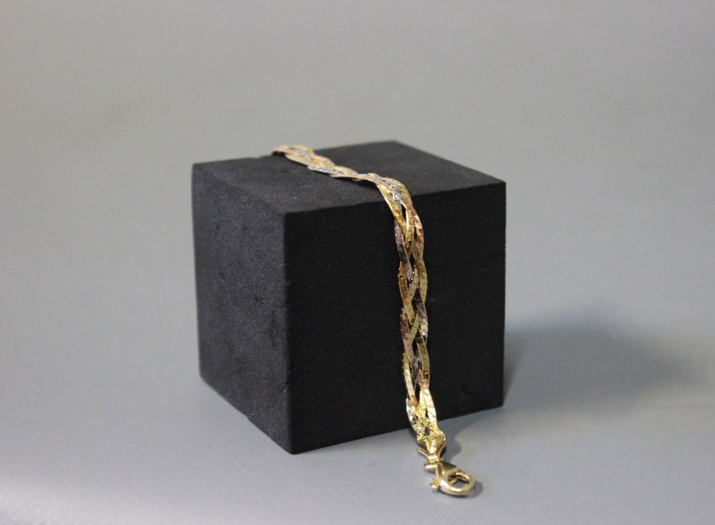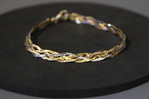 Smukt armbånd i 14 kt. Rødguld, hvidguld og guld.