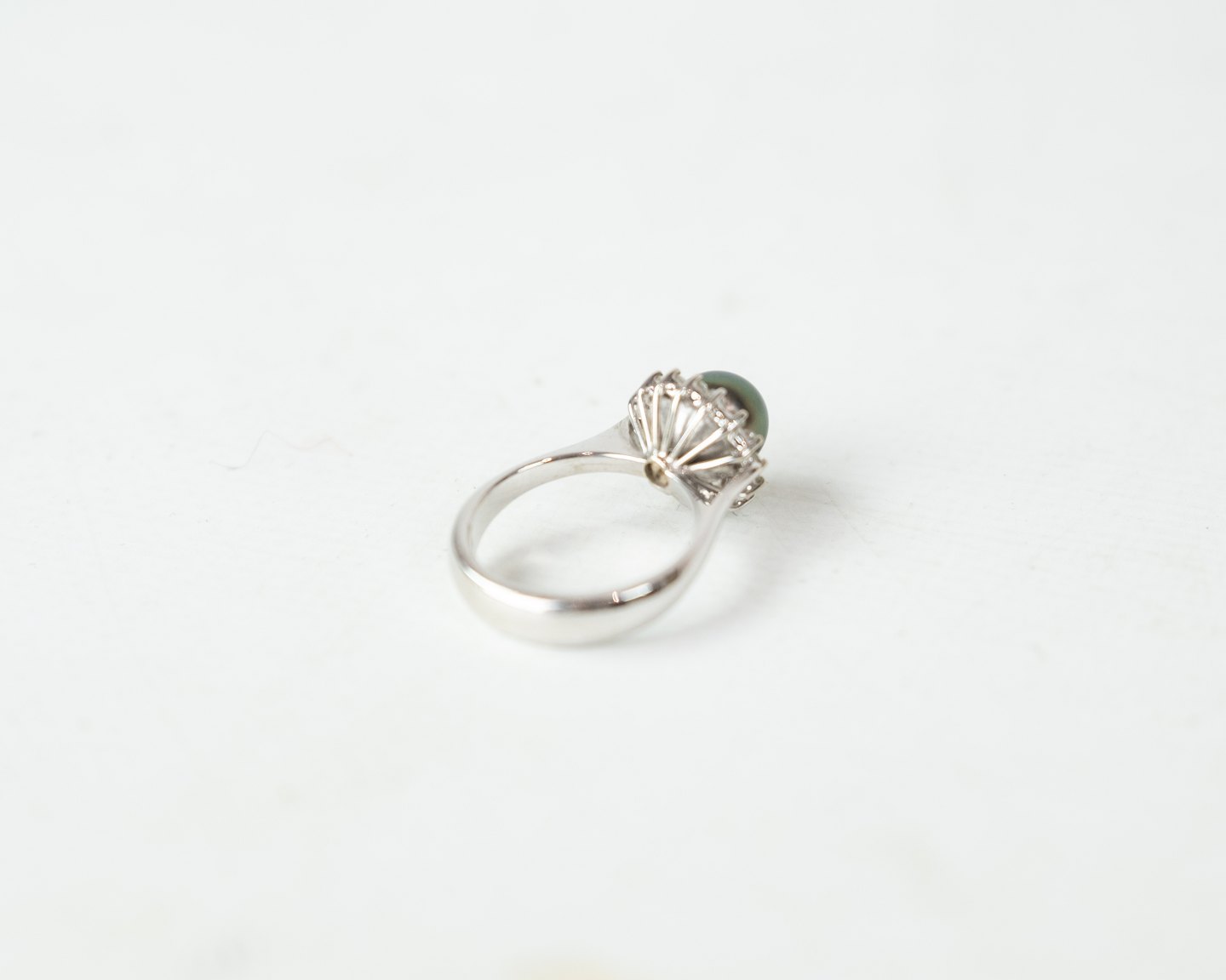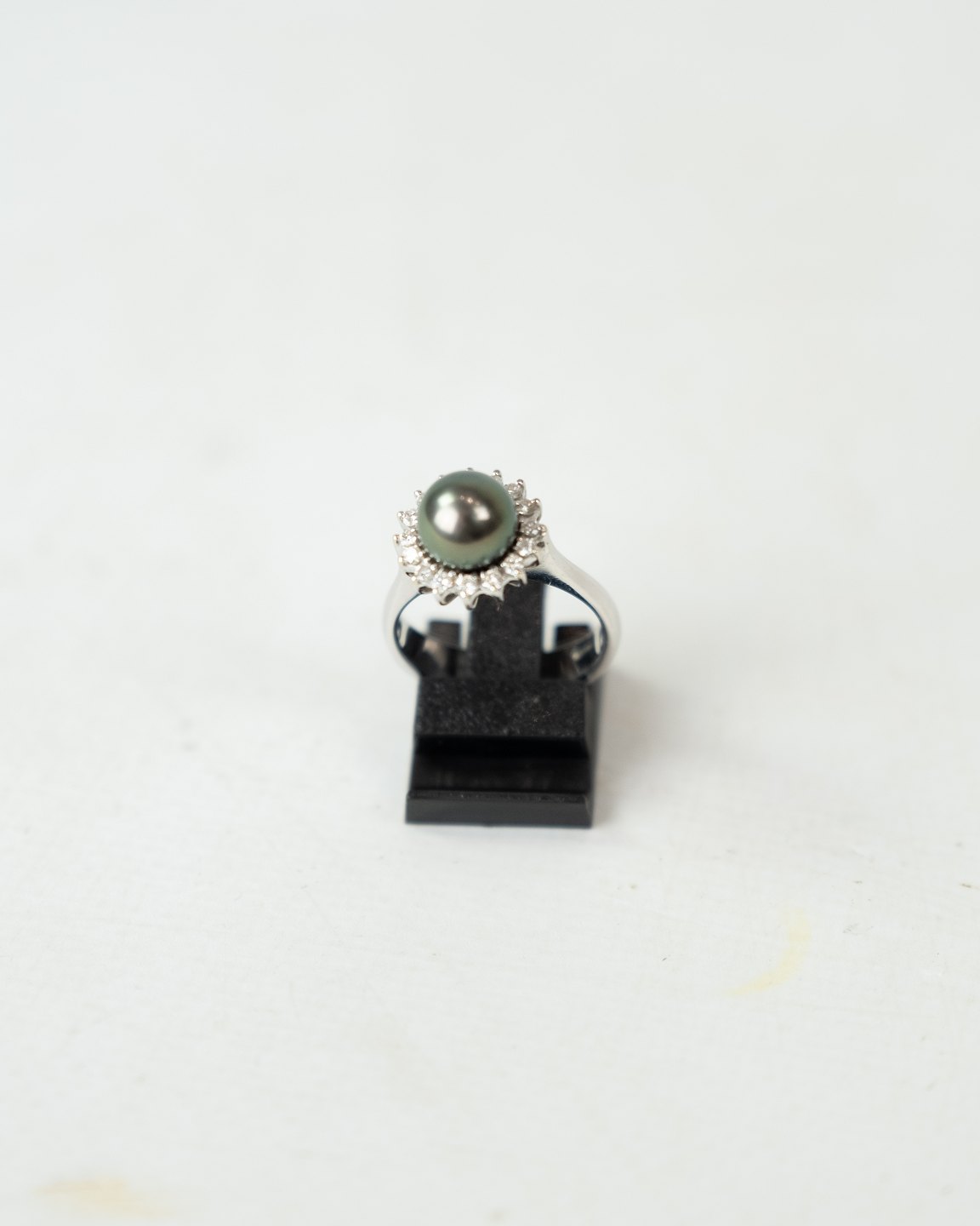 Ring i 18 kt. hvidguld med Tahiti perle omkranset af 15 diamanter.