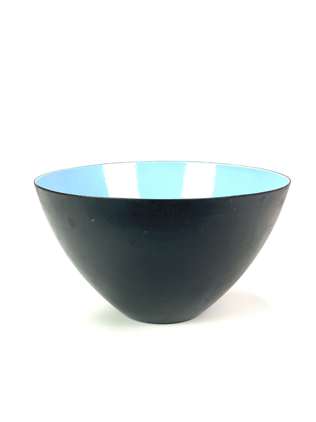 Krenit skål af Herbert Krenchel i sort metal og blå emalje fra 1960erne. Skålen er af dansk design og i flot brugt stand.