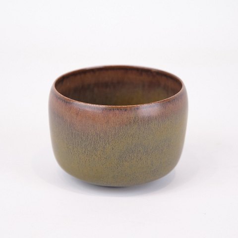 Saxbo blev grundlagt i 1929 af Nathalie Krebs og Franz Syberg og blev hurtigt kendt for sit teknisk præcise og æstetisk stramme stentøj. Krebs’ arbejder kendetegnes af enkle, skulpturelle former og eksperimenterende glasurer, som i denne vase, hvor farvespillet ændrer karakter med lyset og underlaget.