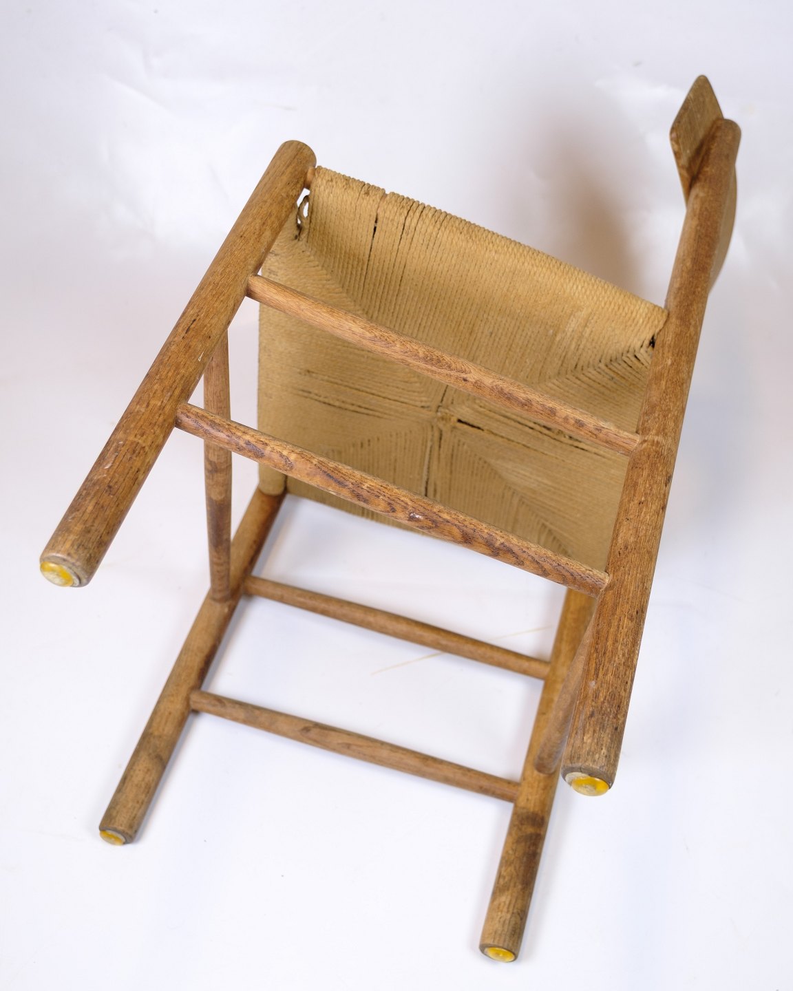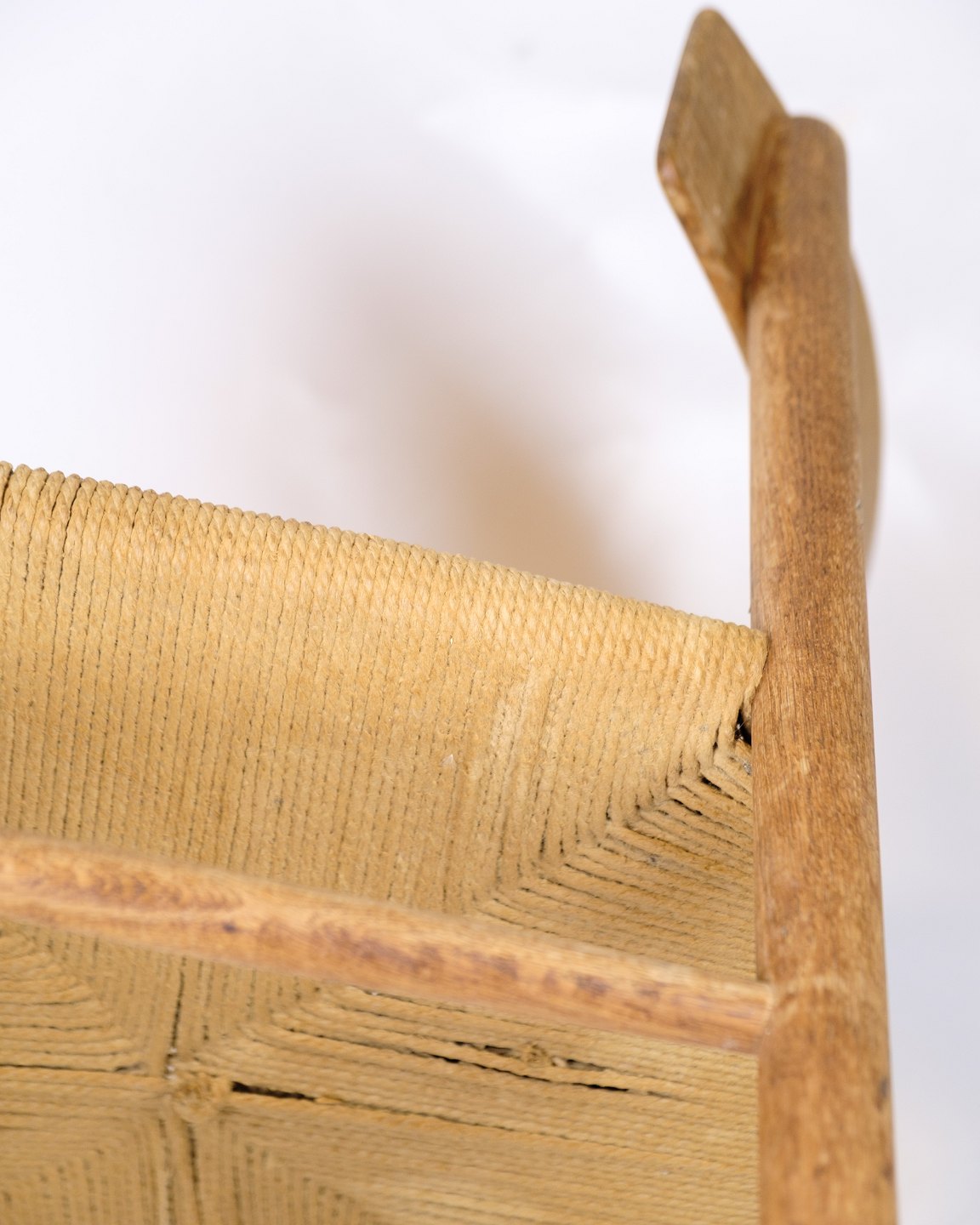 SoldJ39 Folkestolen by Børge Mogensen for FDB Møbler. Oak with paper yarn weave. Danish design classic from the 1960s.