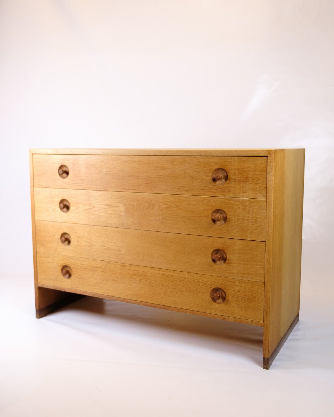 SolgtLav kommode i egetræ, designet af Hans J. Wegner for Ry Møbler i 1950’erne.