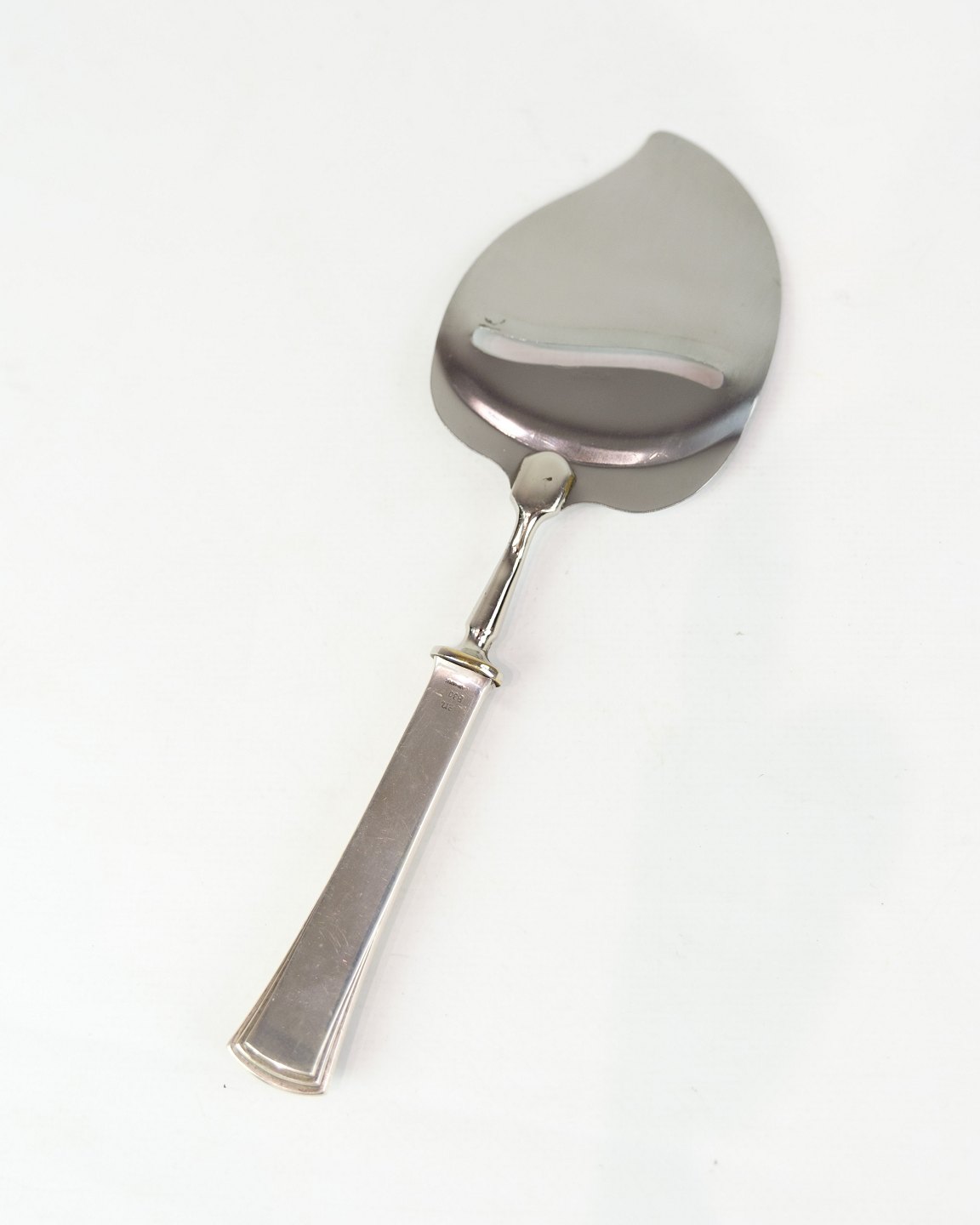 Evald Nielsen ostehøvl i ægte sølv. Congo mønster No. 32. Længde 20 cm. Klassisk dansk sølvarbejde.