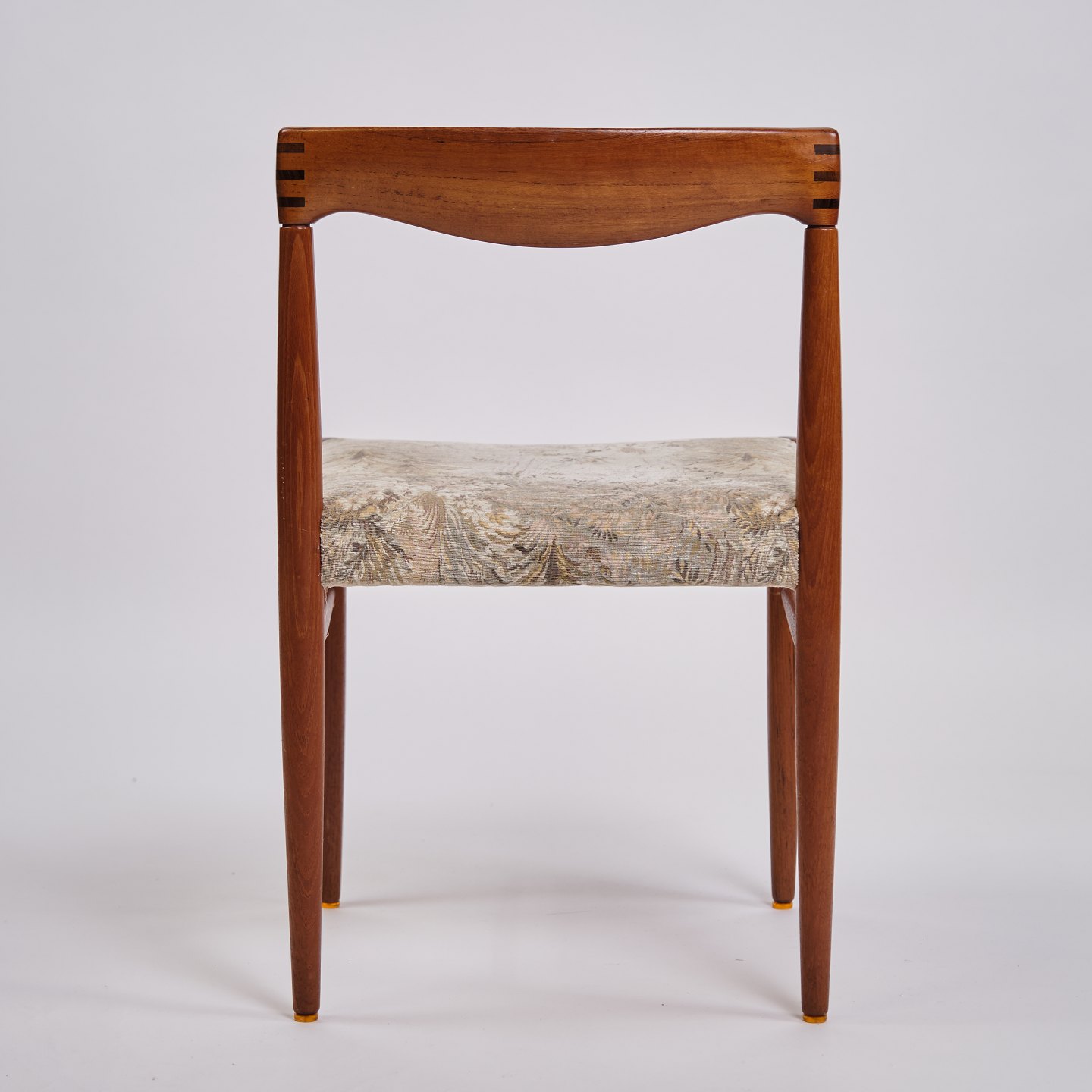 Sæt af seks spisebordsstole af Henry W. Klein for Bramin. Teaktræ og lys polstring. Danmark, 1960’erne. H: 75 cm, B: 48 cm, D: 43 cm, SH: 45 cm.