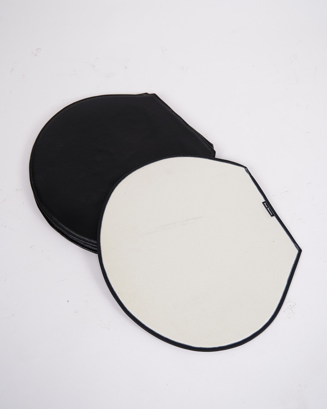 SoldSet of four black leather cushions for Arne Jacobsen chair model 3107. Fit design. Comfortable and stylish accessory for Danish design classic.