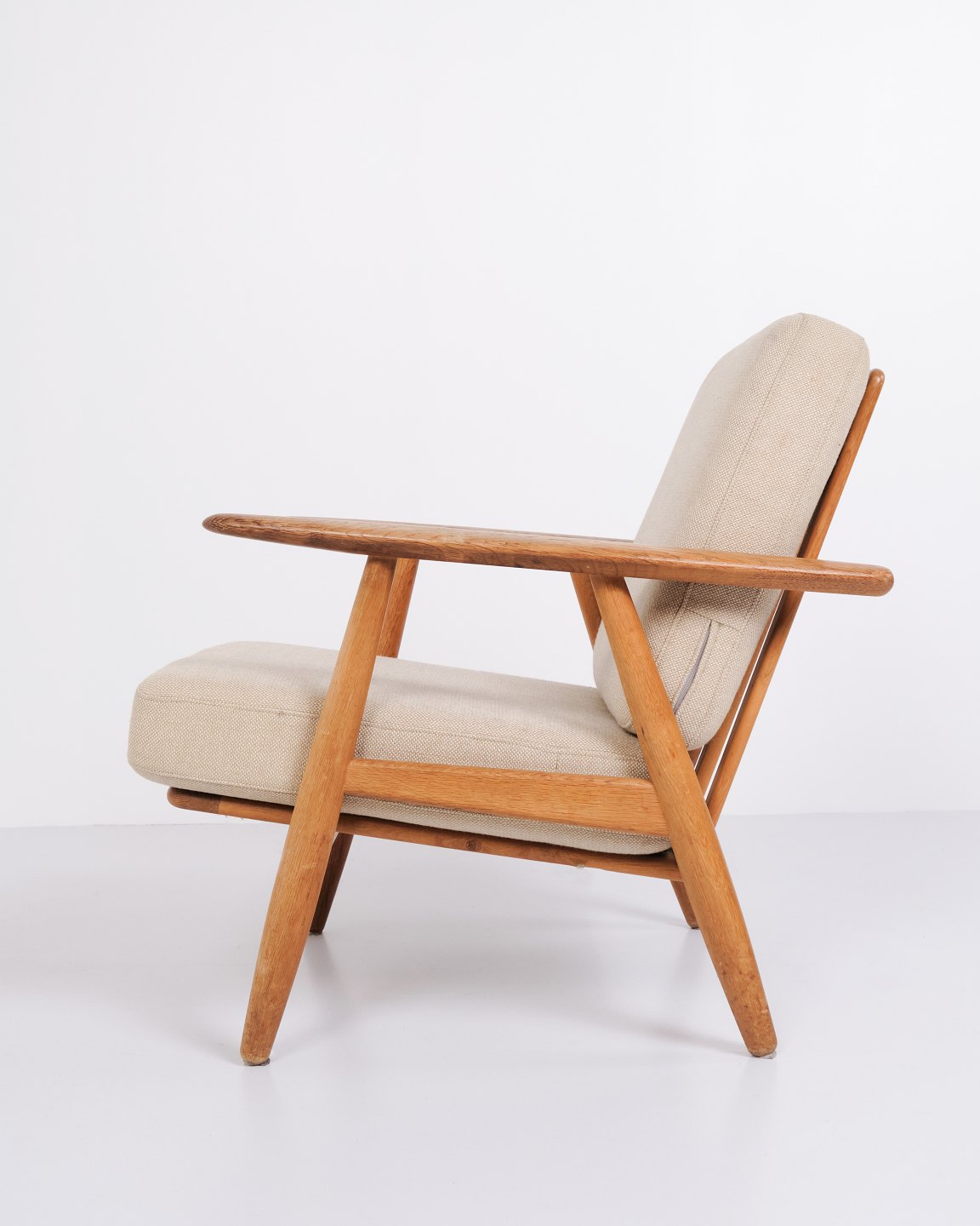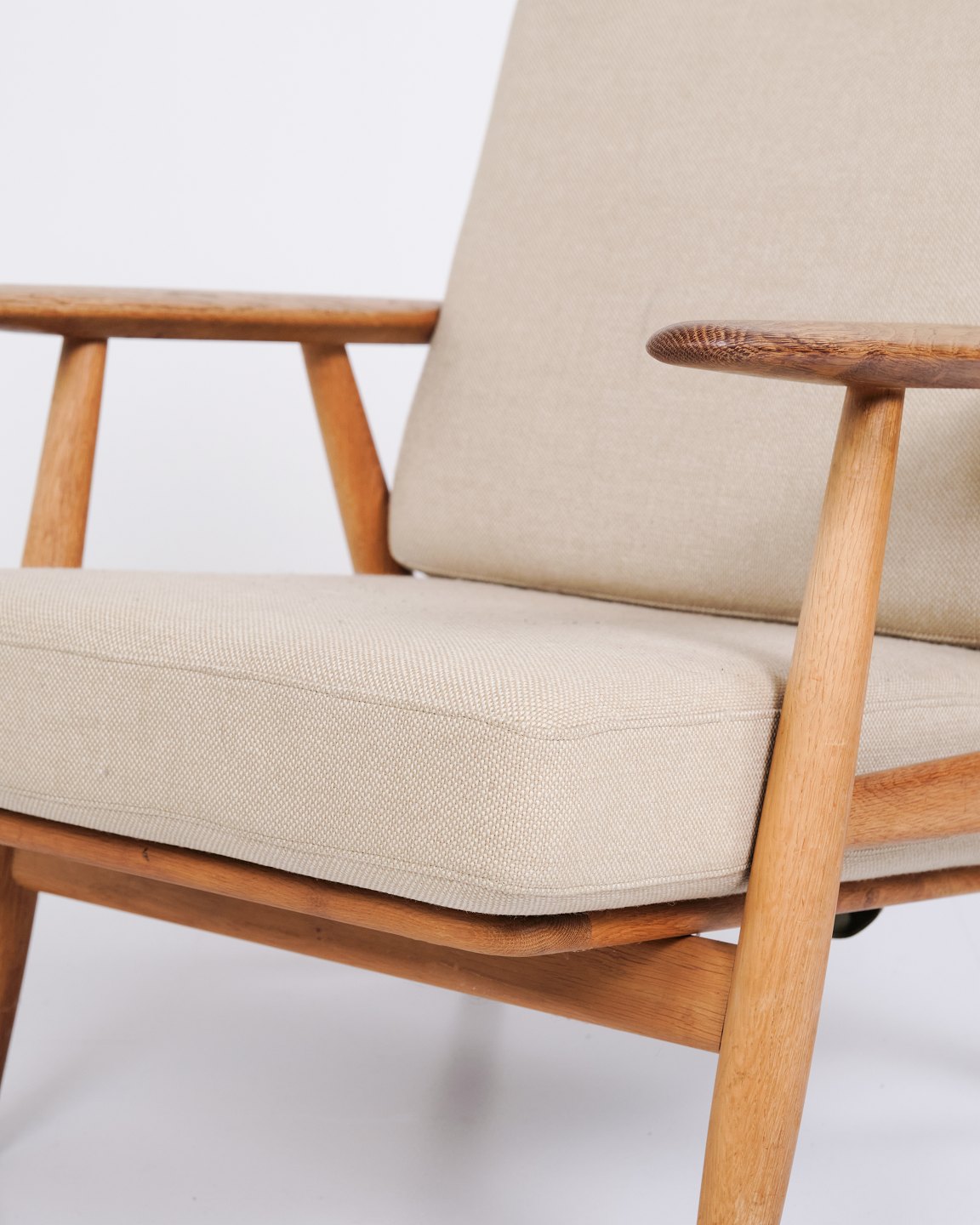 Et Par "Cigar" Lænestole - Model GE 240 - Egetræ & Lyst Stof - Hans J. Wegner - Getama - 1960erne